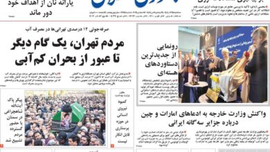 تقویت گمانه دست داشتن موساد در ترور سیدنی، بهبود کم آبی با صرفه جویی16درصدی تهرانی ها و… از تیترهای مطبوعات…